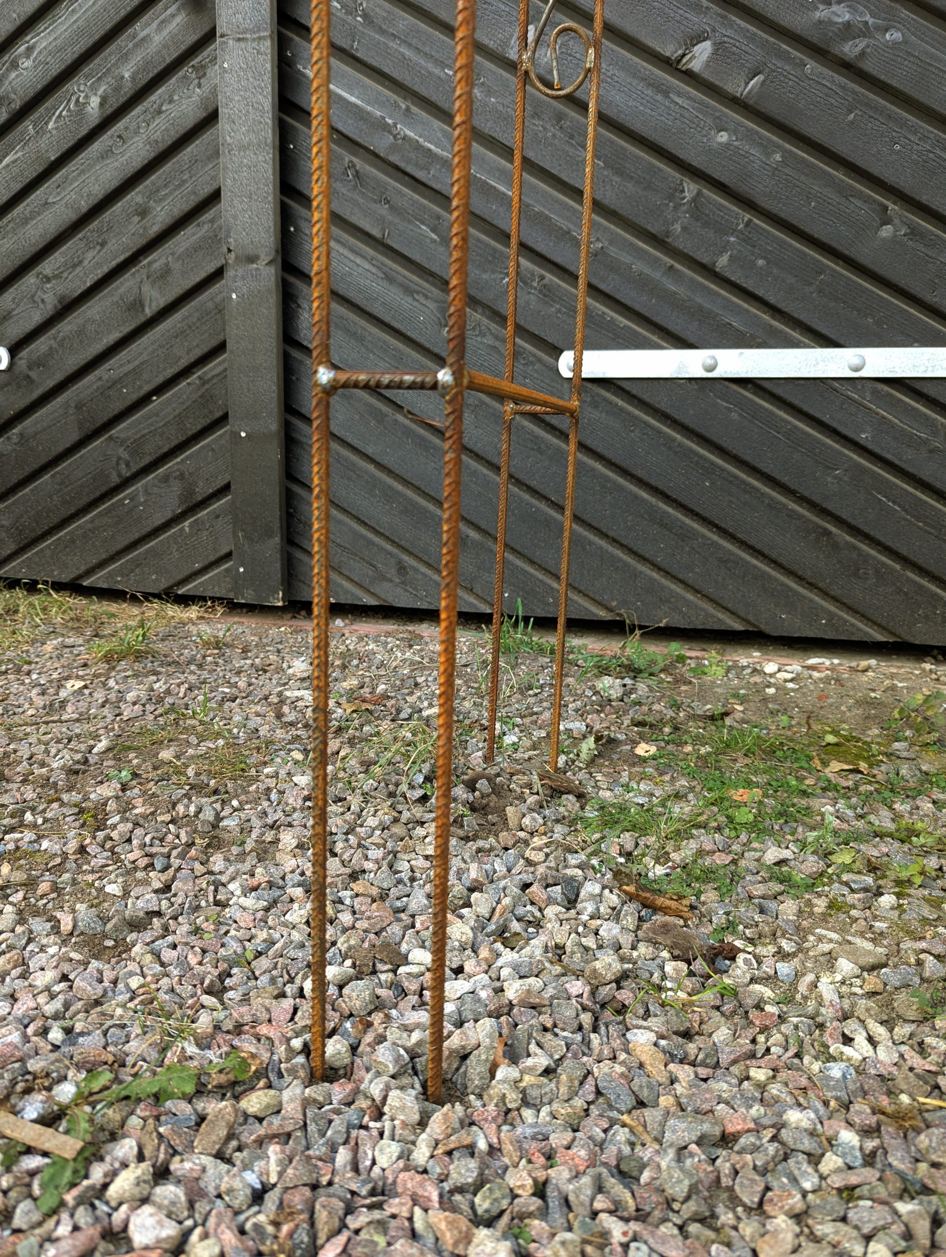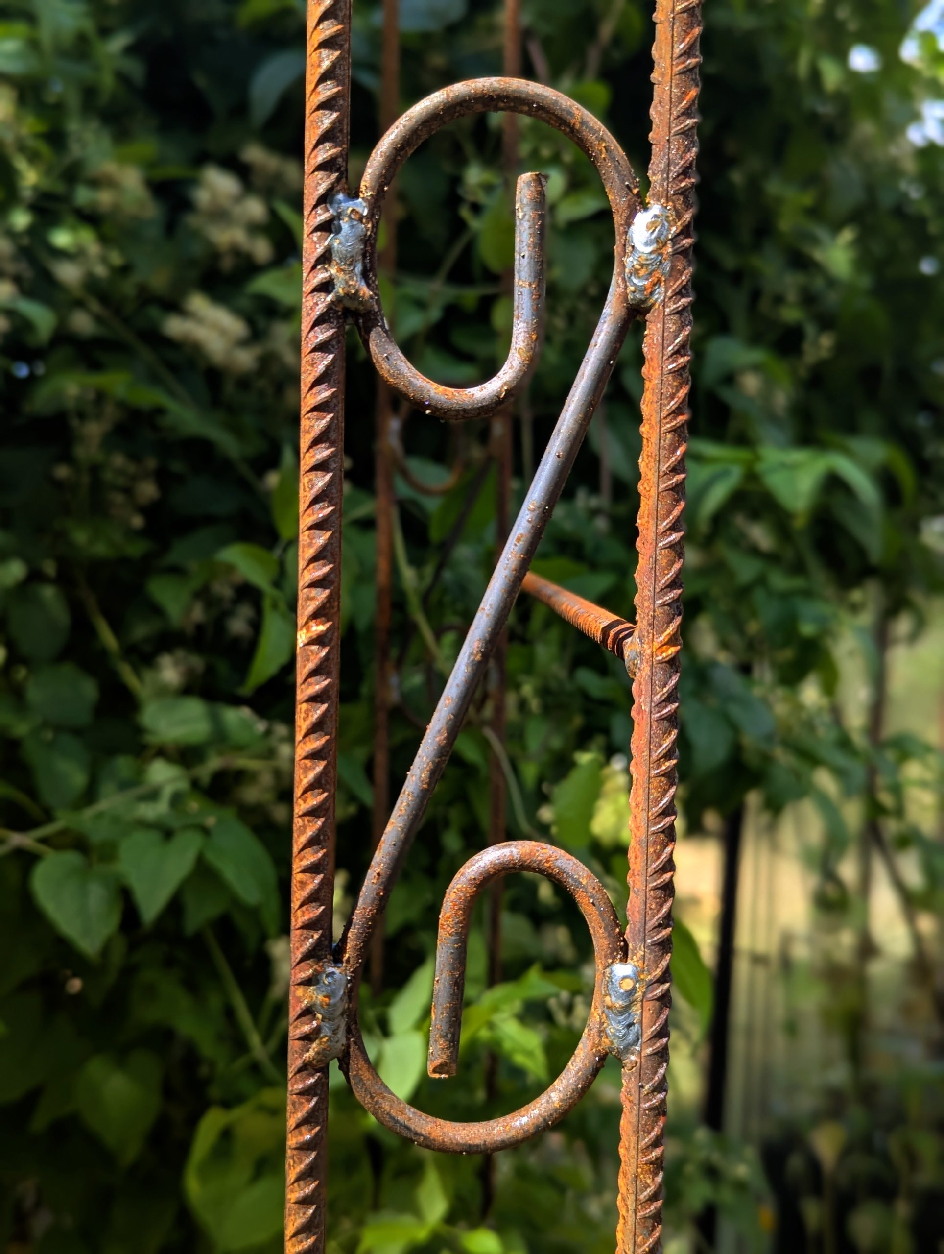 Stommen är tillverkad i 8mm armeringsjärn och ornamenten i 6mm rundstång.