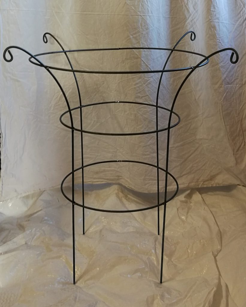 Växtstöd – Pionen Höjd: ca 83cm Diameter: Översta ringen är ca 60cm och de två undre är ca 42cm Material: 6mm obehandlad rundstång som kommer att få en rostig yta när stödet placera utomhus. Pris: 420kr Tillbaka