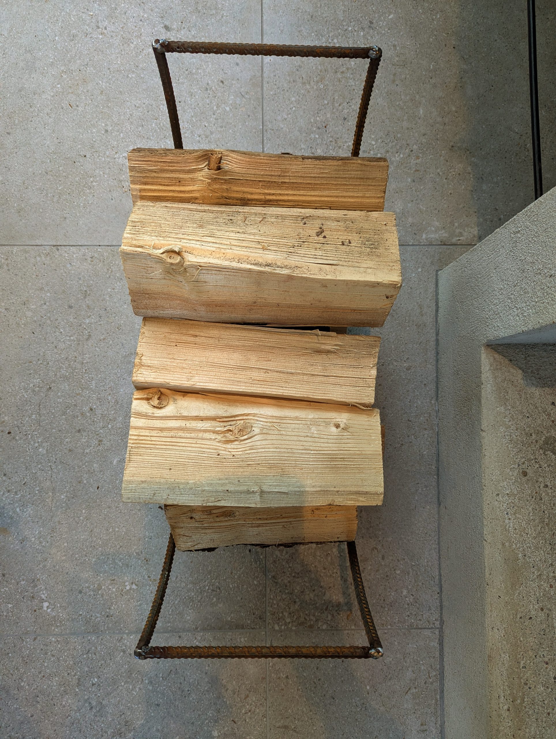 Dekorativt vedställ för utom- och inomhusbruk. Storleken kan anpassas efter dina önskemål.