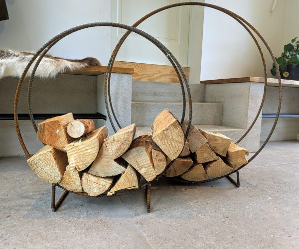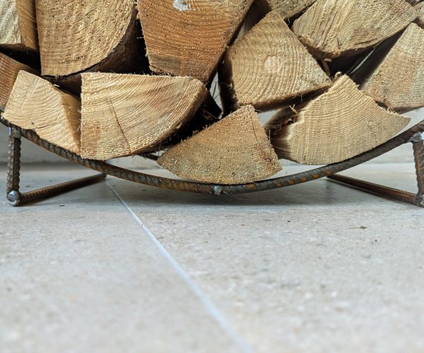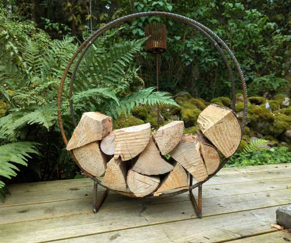 Dekorativt vedställ för utom- och inomhusbruk. Storleken kan anpassas efter dina önskemål.